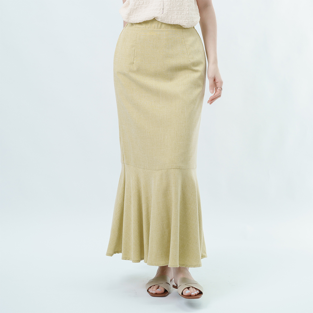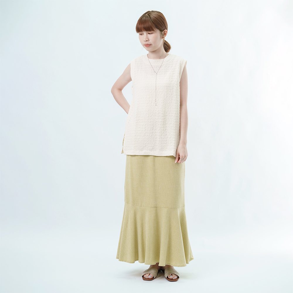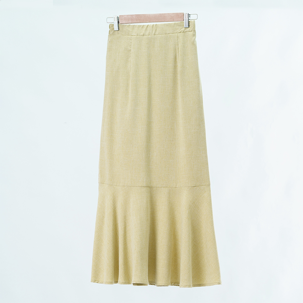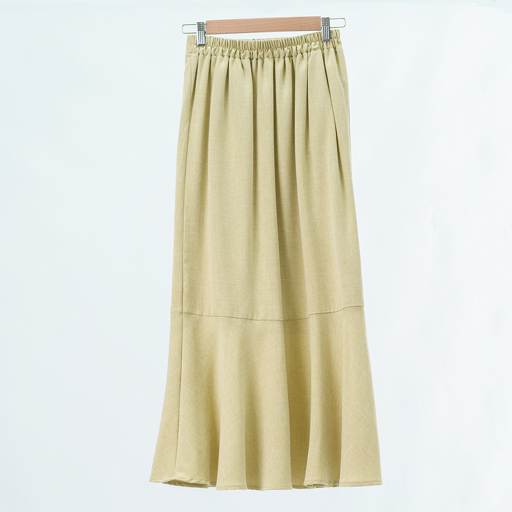 腰部的鬆緊線條延伸長腿 再以魚尾落下垂墜