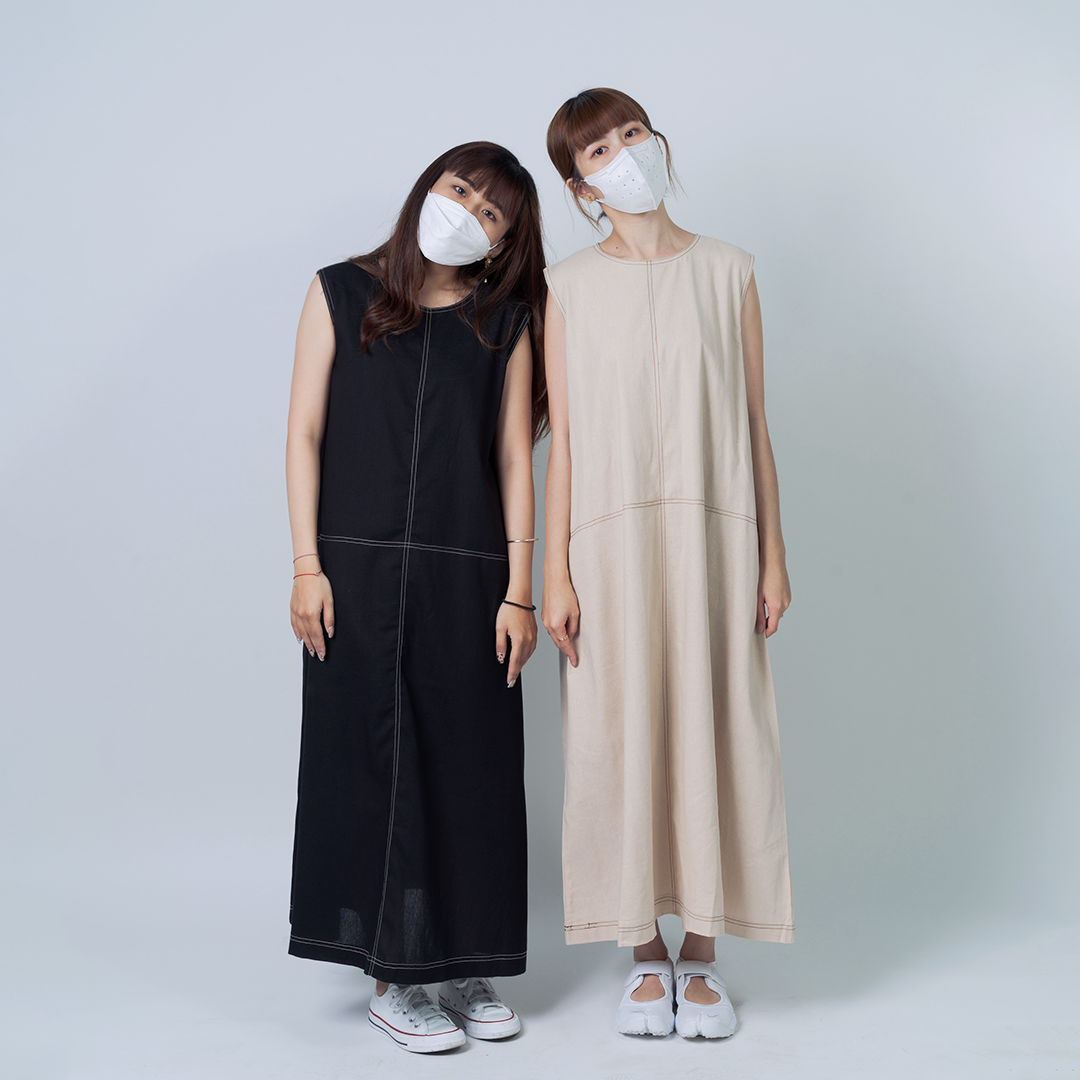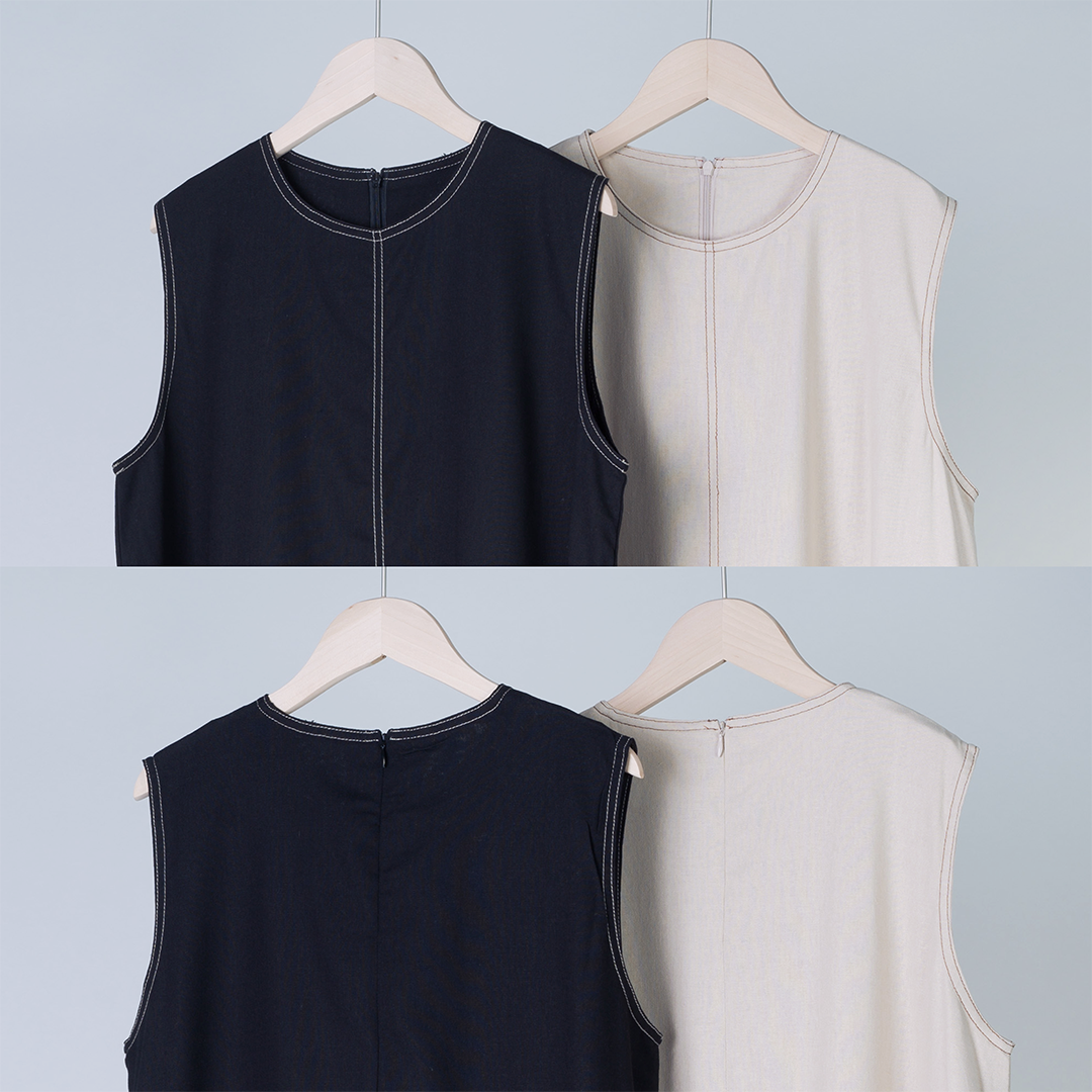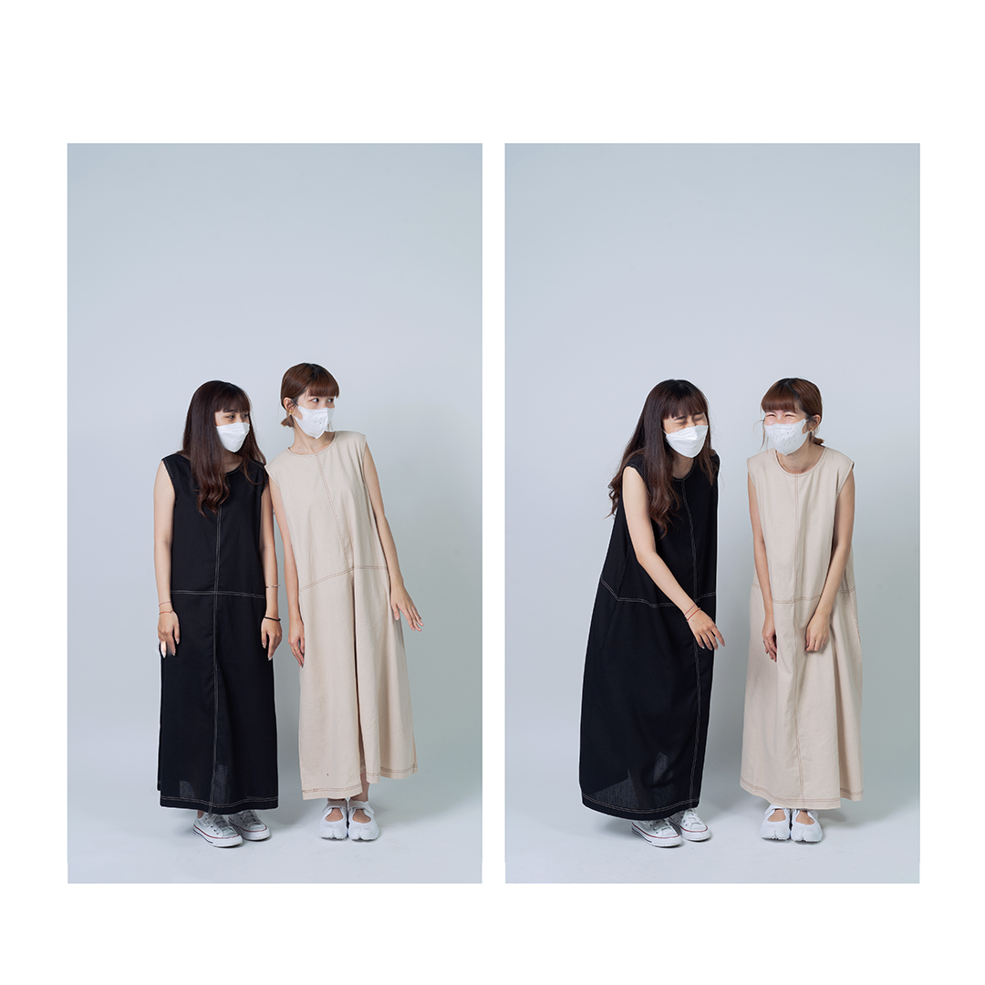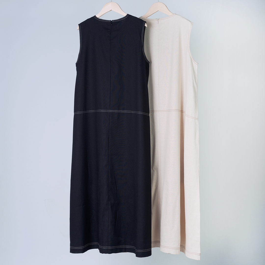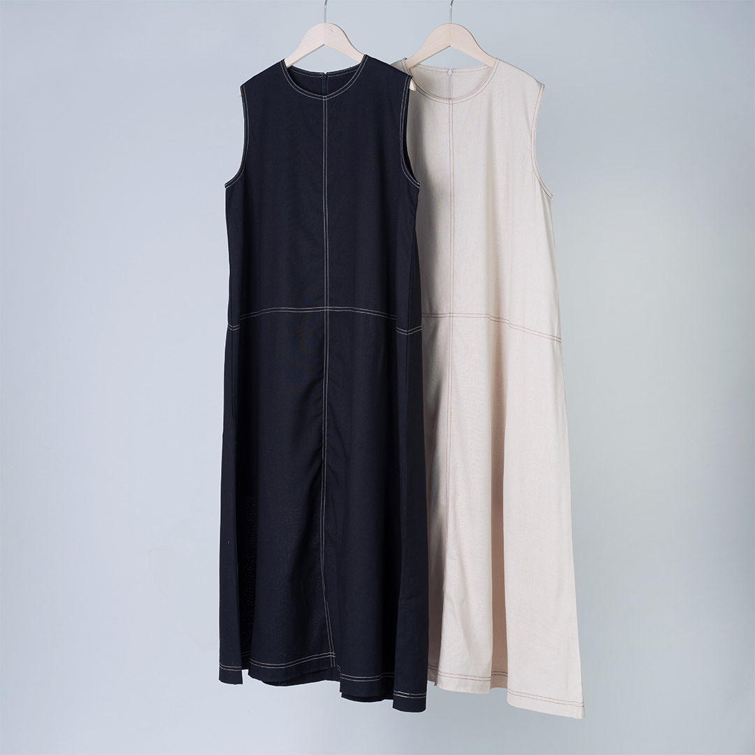 帶有對比色縫線細節長版洋裝,讓你自在展現柔和的輪廓與優雅線條