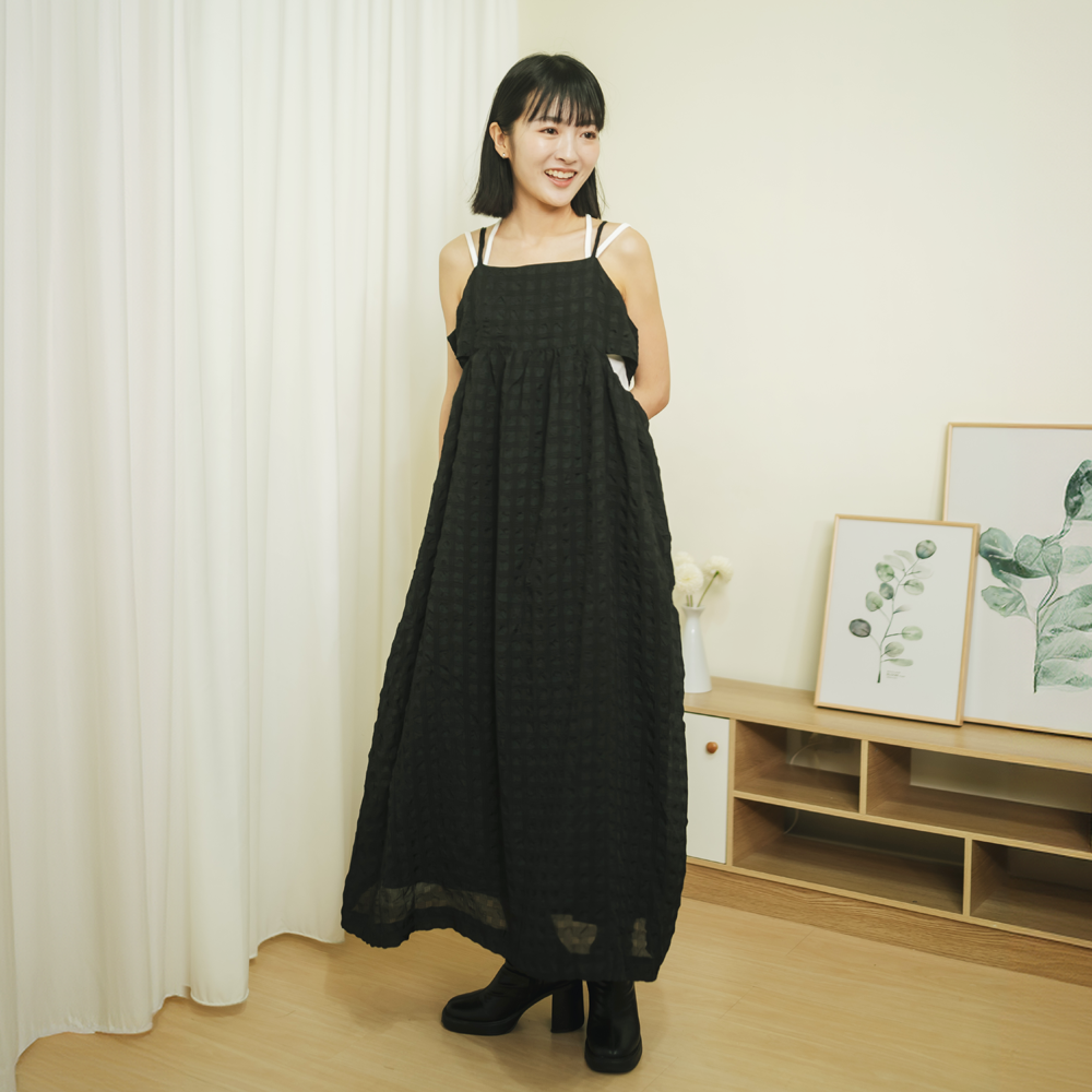 搭配特殊肩帶背心做內層,單穿洋裝時清涼舒適💦