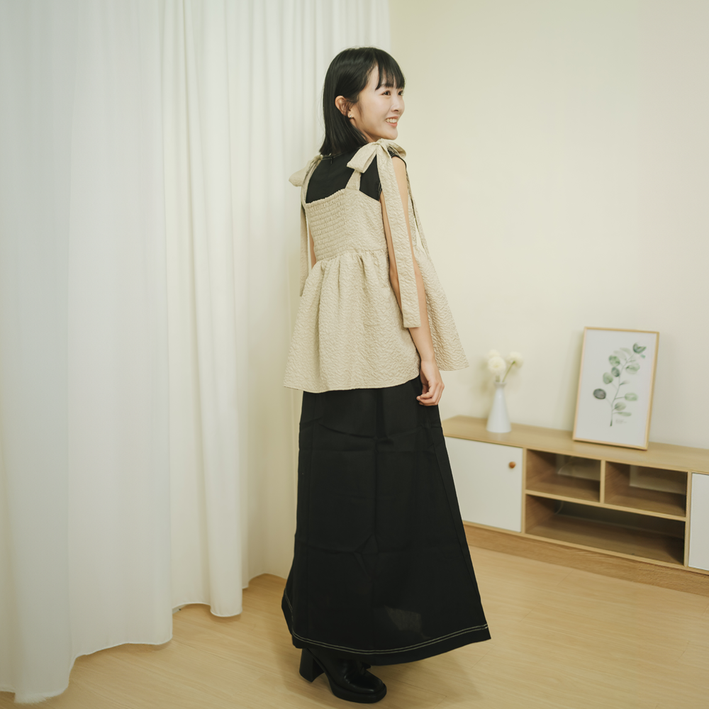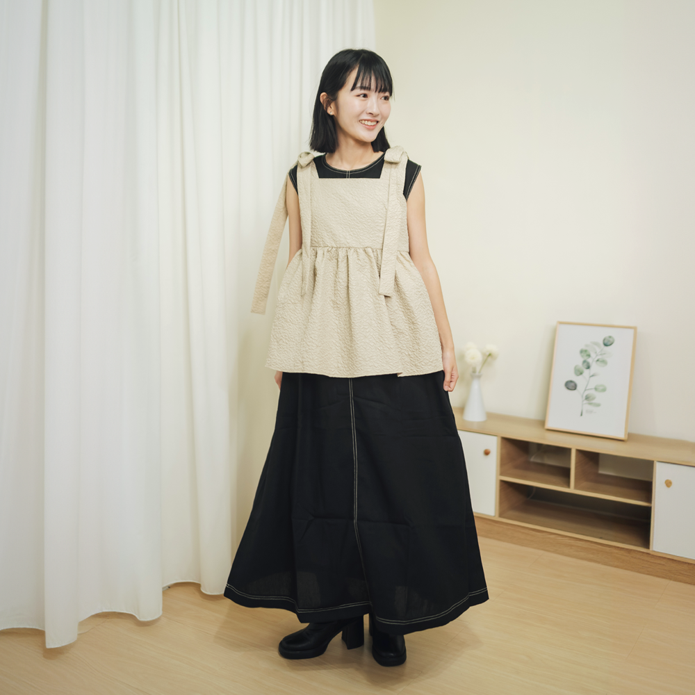 ■ 尺寸:衣長 64cm / 胸寬 100cm / 腰寬 97cm / 下擺 156cm(人工平放測量,材質及手工略有 ±2cm 誤差屬正常範圍)