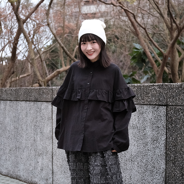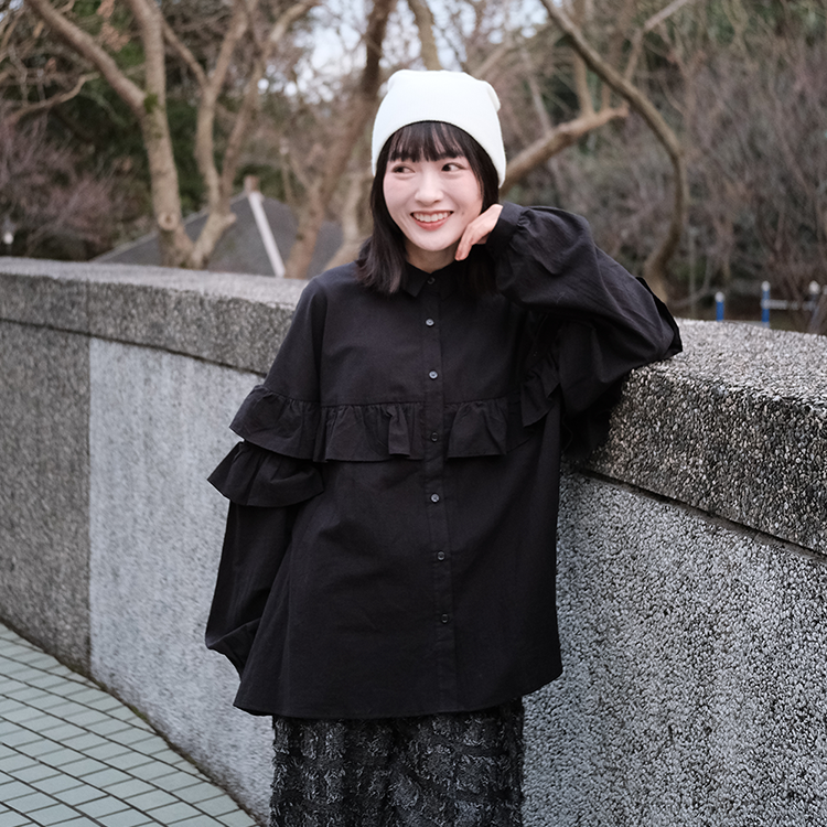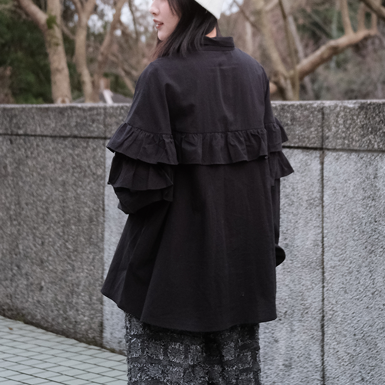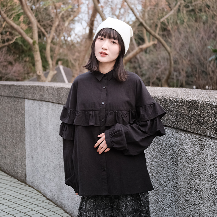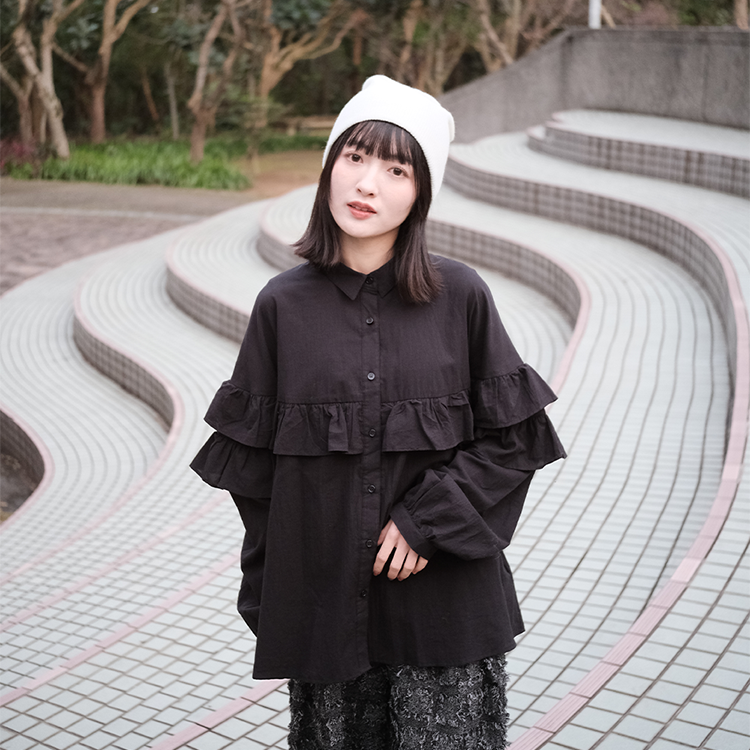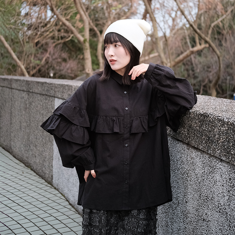 帶有自然皺褶質感的純棉復古荷葉邊襯衫