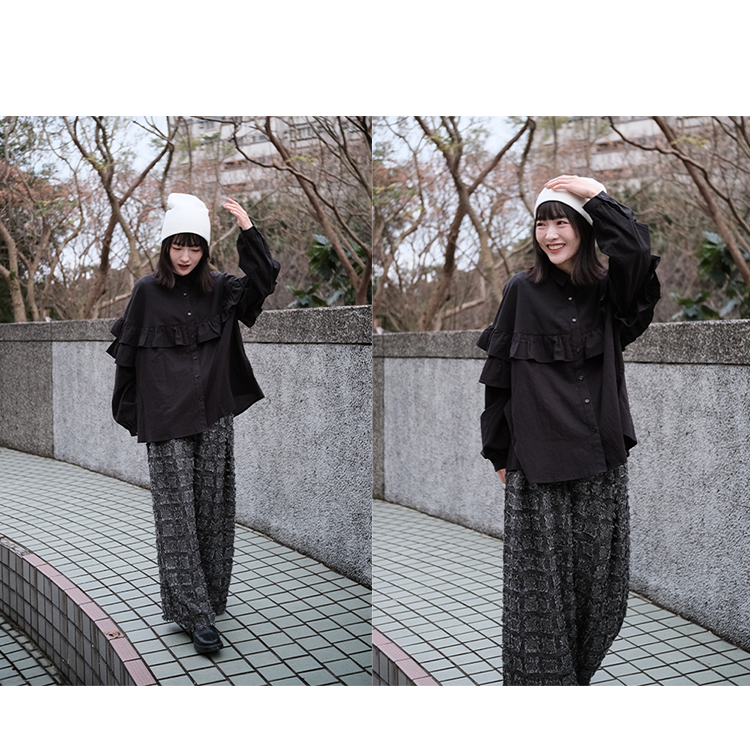 即使平常不常穿荷葉設計的人,也能輕鬆駕馭